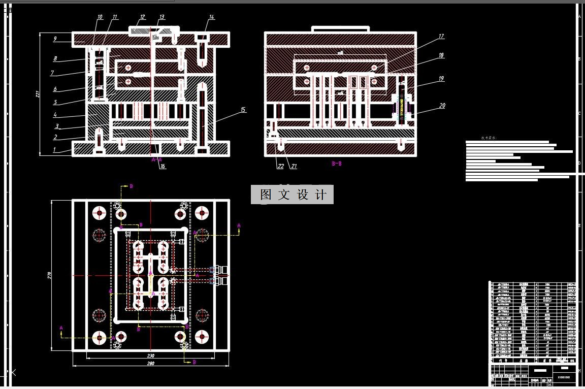 塑件的成型工艺分析主要包括:塑料的成型特性、塑件结构特点、表面粗糙度、达到的使用要求和脱模分析。以此来确定型腔数目、分型面位置、浇注方式、脱模方式等。最后完成一幅完整的模具设计总图,包含成型部分、合模导向机构、推出机构、冷却系统等的设计,设计的过程包括了对成型零件的计算、校核计算等。1459492