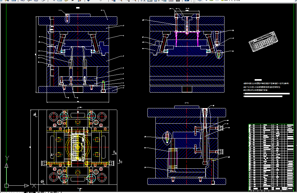 模具设计一般包括成形零件设计、注塑机选择、脱模、抽芯、冷却、浇注、排气等系统的设计,合理的模具结构设计能够提高模具的质量、性能、寿命和成本。模具CAD作为一门综合性应用技术已成为现代模具技术的核心和最重要的发展方向。
