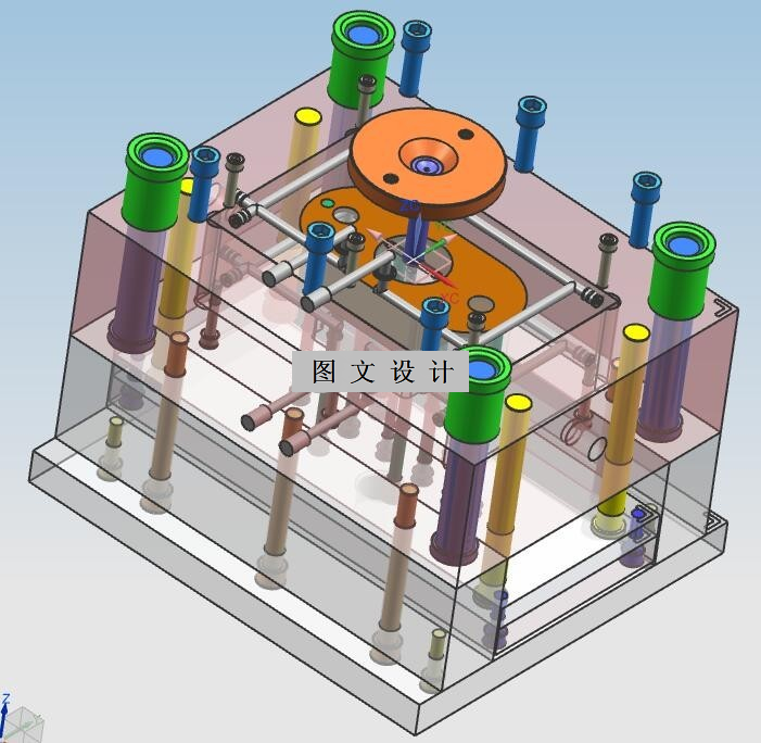 电器盖尺寸比较大,这里采用的一模一腔进行设计,塑件中间有圆孔,所以采用轮辐式浇口进行进料,推出机构采用推杆进行推出,整体设计比较简单,图纸齐全,三维,二维,加论文都有的