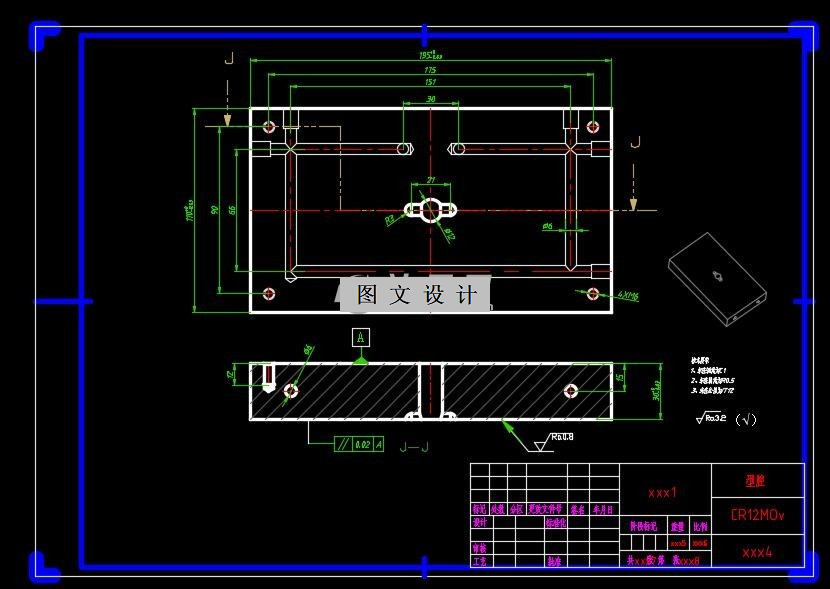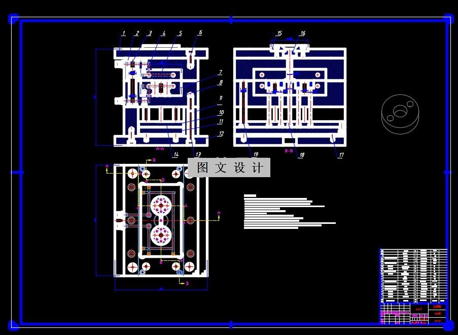 底座是圆形外形,塑件内部有三个圆孔,采用一模2腔的设计方案,分型面采用单分型面,推出结构采用推杆推出。全套资料有三维图,二维装配图,型芯,型腔,塑件图,说明书