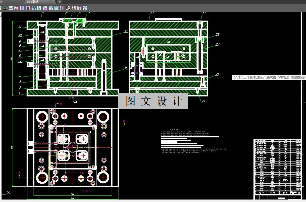 塑料端盖采用点浇口,推杆顶料,推件板完成脱模,该模具结构紧凑,工作可靠,生产效率高。最后分析了模具的工作过程,对模具结构与注射机的匹配进行了校核。