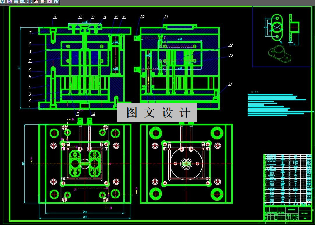 套管c采用的一模2腔进行设计,分型面采用的单分型面,浇口形式采用的是侧浇口,塑件的下面的是圆柱,所以采用推管推出,全套设计有三维,二维全套加说明书1459086