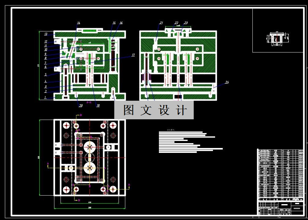 塑料端盖采用侧浇口,利用外侧抽芯,推杆顶料,推件板完成脱模,该模具结构紧凑,工作可靠,生产效率高。最后分析了模具的工作过程,对模具结构与注射机的匹配进行了校核。1459032