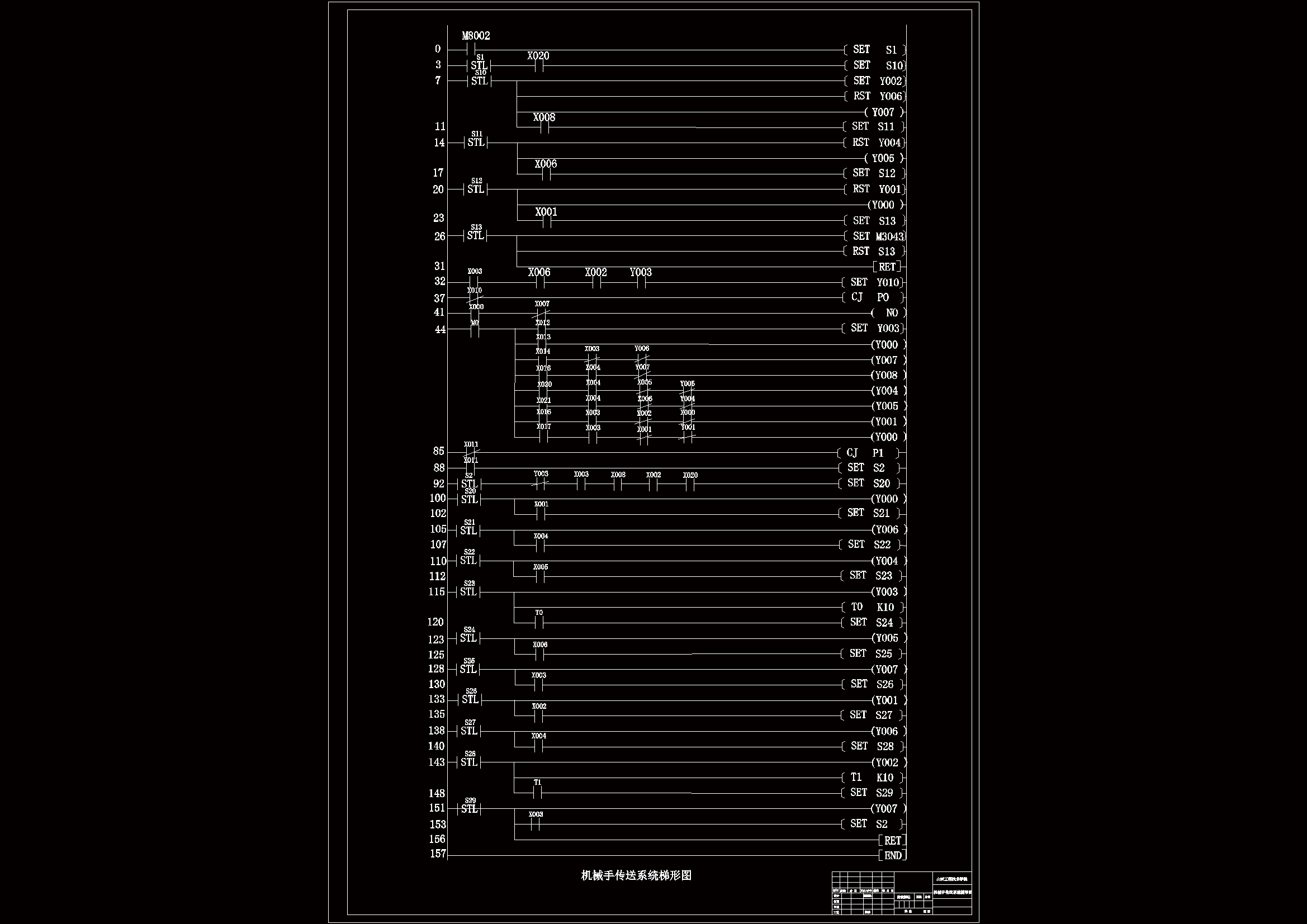 利用可编程序控制器对机械手进行控制,选取了合适的PLC型号,根据机械手的工作流程制定了可编程序控制器的控制方案,画出了机械手的工作时序图,并绘制了可编程序控制器的控制程序。