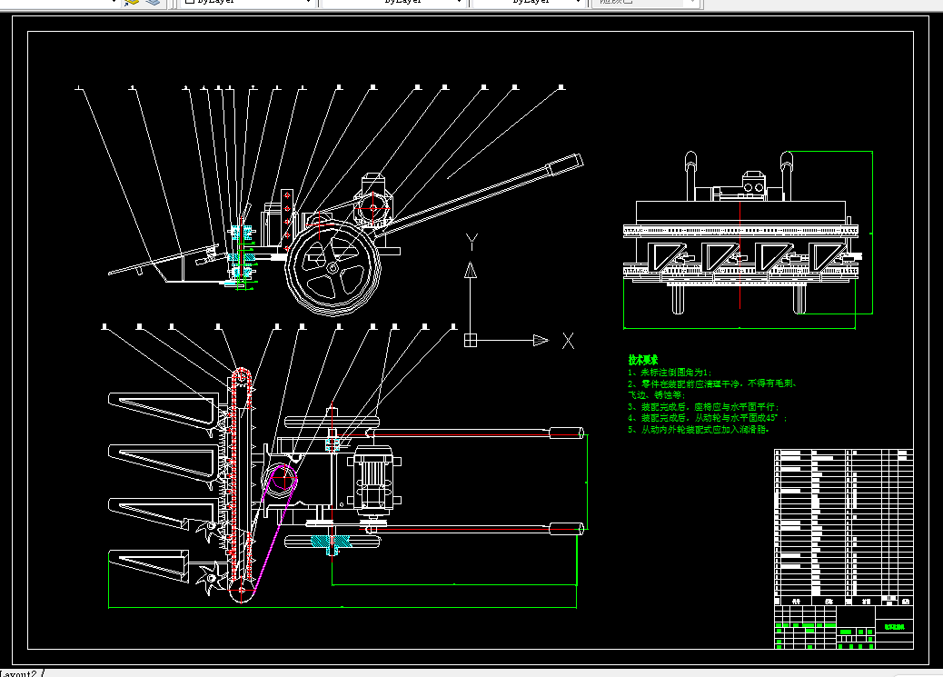 根据收获对象对收割机的各种约束条件和设计原则,本论文确定了小型牧草收割机的最佳总体方案和适宜的切割系统主轴转速、切割速比、输送速比等设计参数。该机主要由切割系统、输送系统、传动系统三部分组成,自带动力采用立式割台、横向输送。小型牧草收割机机结构紧凑,小巧灵活,转移方便且操作简捷,整机通过性能好,适应性强。