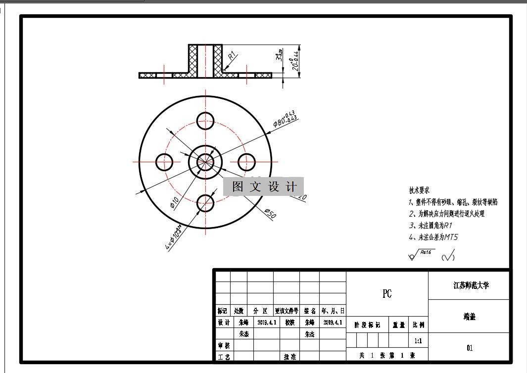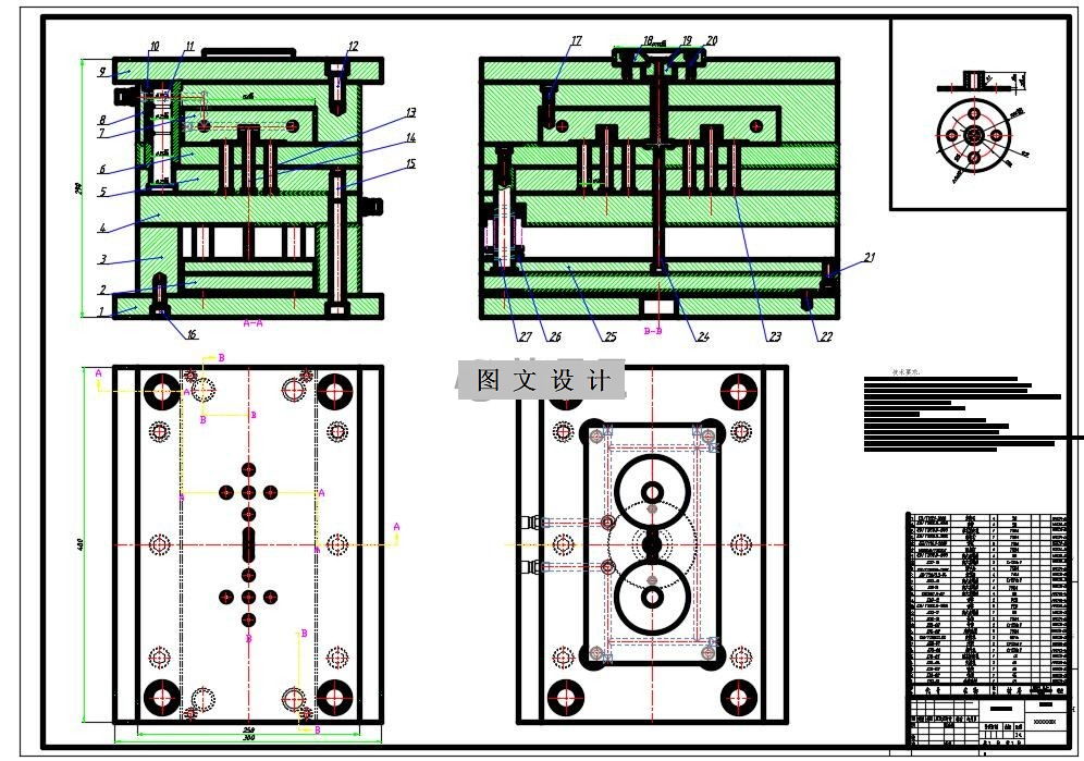端盖A是注塑模 ,塑件比较简单,采用的一模两腔的结构,侧浇口的进料方式,推出结构采用的推件板推出,一起有cad装配图,加制件图,加详细的说明书。 1458719