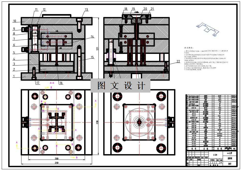 E形板是注塑模具,塑件比较简单,本次设计采用的一模2腔,侧浇口,推杆退出,采用单分型面的结构形式,全部图纸有三维,二维装配图加主要成型零件图图纸,加说明书。1458699