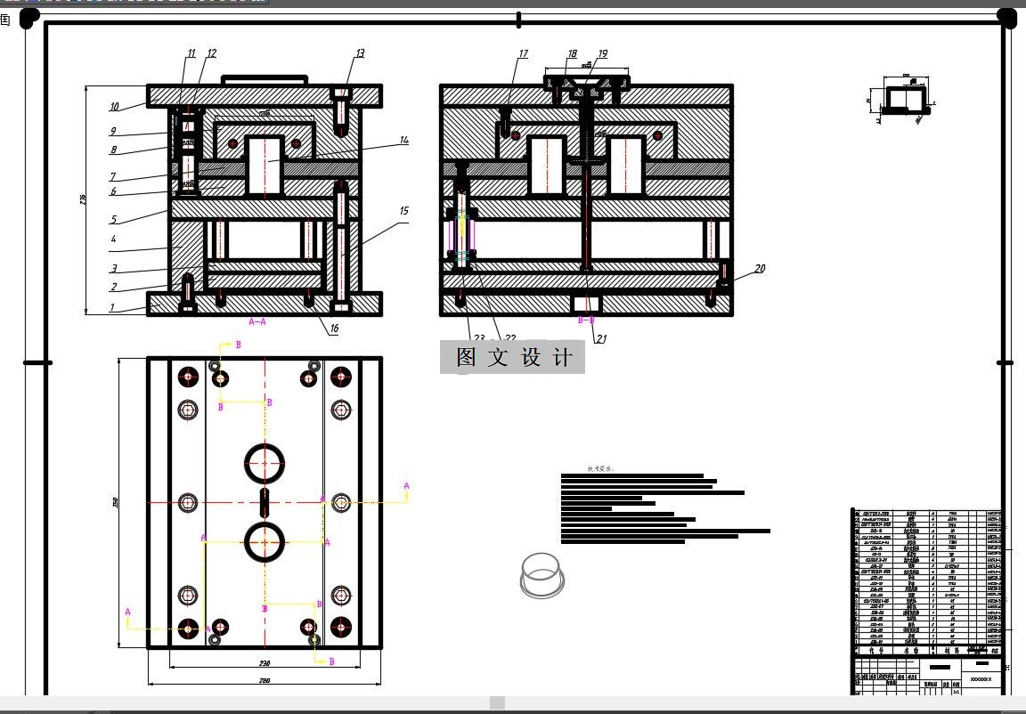 压套比较简单,采用一模2腔的设计方案,推出结构采用的是推件板退出,全套设计有图纸和说明书,图纸有装配图,和主要的零件图,下面截图有详细介绍。1458588