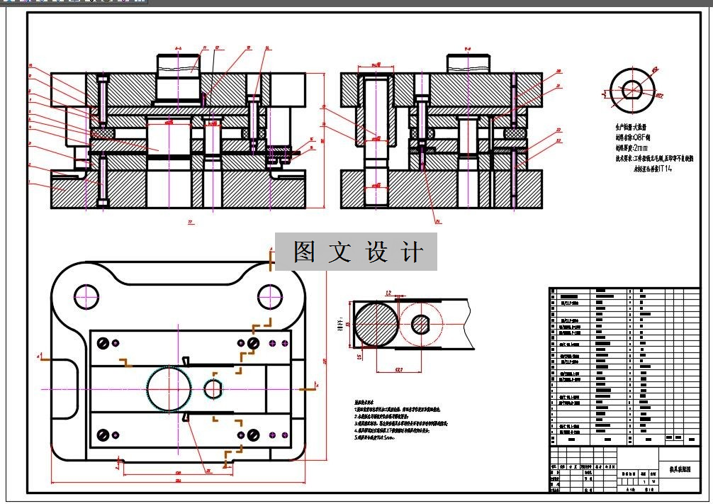 根据设计要求,本次采用的是级进模的设计方案,一起有装配图,落料凸模,冲孔凹模,冲孔凸模,图纸标注详细,精度达标,内容详实,稳定性好,连续模生产效率高1458574