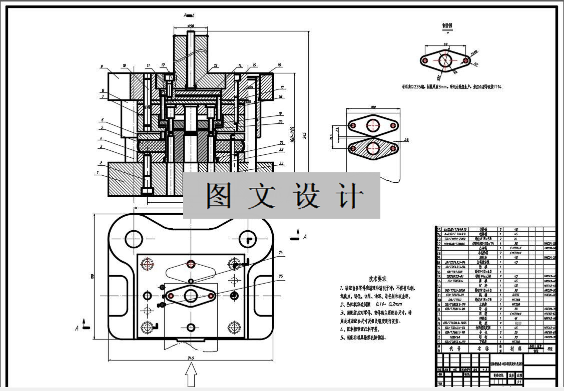 柴油机排气管法兰冲压模设计是两个工序的模具,冲孔和落料组合,本次设计提供装配图,凸模,凹模,凸凹模,加说明书,图纸是cad格式,说明书是WORD格式,一起有一万多字,内容详实,值得参考