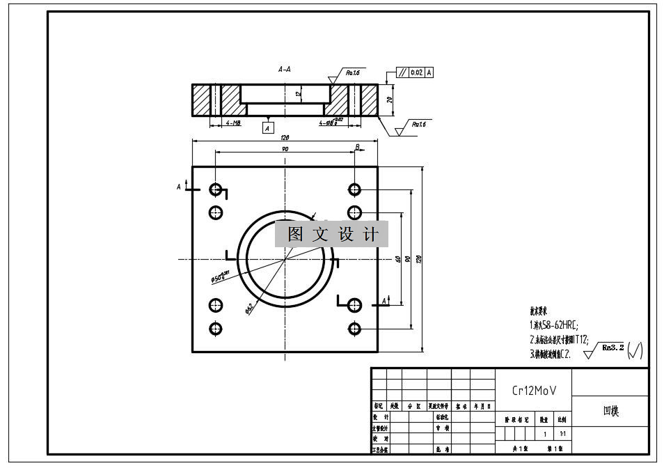 工作原理,该模具为倒装式复合模,工作时,条料送至挡料销处定位。冲裁时,上模向下运动,因弹压卸料板 与安装在凹模型孔内的推件板分别高出凸凹模和凹模的工作面约0.5mm,故首先将条料压紧。上模继 续向下,同时完成冲孔和落料。冲孔废料直接由冲头直接从凸凹模内孔推下,无顶件装置,结构简单,操作方便 。卡在凹模中的冲件由推板,推料杆和推件板组成的刚性推件装置推出。 1458208