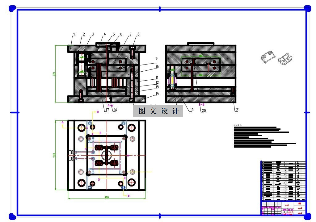 上座注塑模设计是一个课设,实用性很强,塑件整体较小,采用一模多腔进行设计,设计方案采用一模四腔,侧浇口,推杆推出的方式。一起文件有图纸和说明书,装配图,成型零件图都有