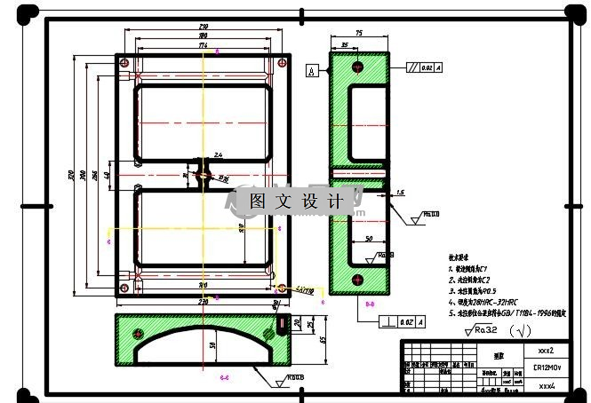模具采用一模2腔,单分型面的结构,整体较为简单,一起有装配图,型芯,型腔塑件图,说明书,模具采用的是推件板退出的,进料方式采用的是侧浇口。详细看图 1458190