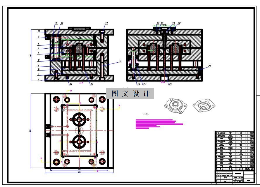 本设计采用CAD、UG软件,进行了塑料模具设计,根据注射模设计,分型面选择在大断面处,进行了浇注系统设计,成型后,塑件成型的产品放在注塑机上。设计需要计算塑件的尺寸,确定尺寸精度,然后注射机的选择。检查注塑机参数包括厚度,模具安装尺寸,模具闭模行程,注塑机锁模力等参数,所有符合要求在确定注射机的类型。在设计过程中,为了更清晰地表达模具的内部结构,所以有很多的模具结构和模具的局部图,并绘制二维图。1458142