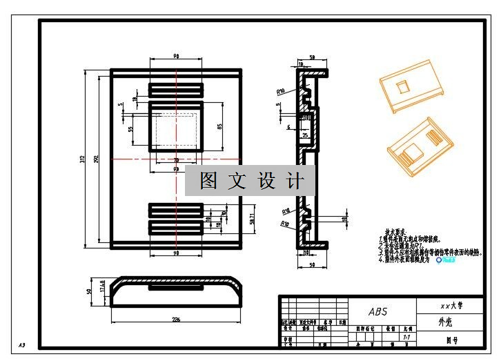 净化器控制部分外壳是空气净化器的主要组成部分,一个完整、优化的模具设计对其成型质量至关重要,通过对控制部分外壳模具的设计,不仅加深了我们对专业知识的进一步掌握及运用,同时也让我们学到的模具设计过程中更多的相关知识和提高了我们在实际生产中解决问题的能力。 本次设计主要根据所给的空气净化器控制部分外壳零件来进行模具的设计,考虑到空气净化器控制部分外壳塑料制品的结构工艺性和成型工艺性,塑料注射成型工艺及其控制。利用UG对控制部分外壳进行模型的建立,然后根据其体积和质量选择注射机的型号,并通过查阅书籍设计了空气净化器控制部分外壳的模架,选择了分型面的位置,确定型腔的排列方式,进行浇注系统的设计,设计推出机构,选择内侧抽芯机构类型,计算模具的冷却系统。除此以外还计算了型芯和型腔各个尺寸,并且对模具进行了安装校核,完成了浇注系统和型腔的布局的设计,并完成了二维图的绘制。