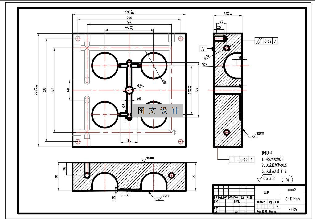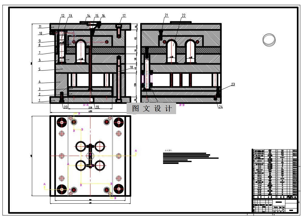 本设计分析了塑件的结构,提出了模具设计的关键点,设计了模具的整体结构。根据塑件分型面的位置,设计了推杆的推出结构,零件采用了单分型面的侧浇口,提高了零件的外面质量。通过对塑件进行工艺的分析及其结构分析,从产品结构工艺性,具体模具结构出发,对模具的浇注系统、模具成型部分的结构、顶出系统、注射机的选择及有关参数的校核都有详细的设计。该模具一模四腔,采用顶针顶出结构。经过生产验证,该模具结构合理,动作可靠。