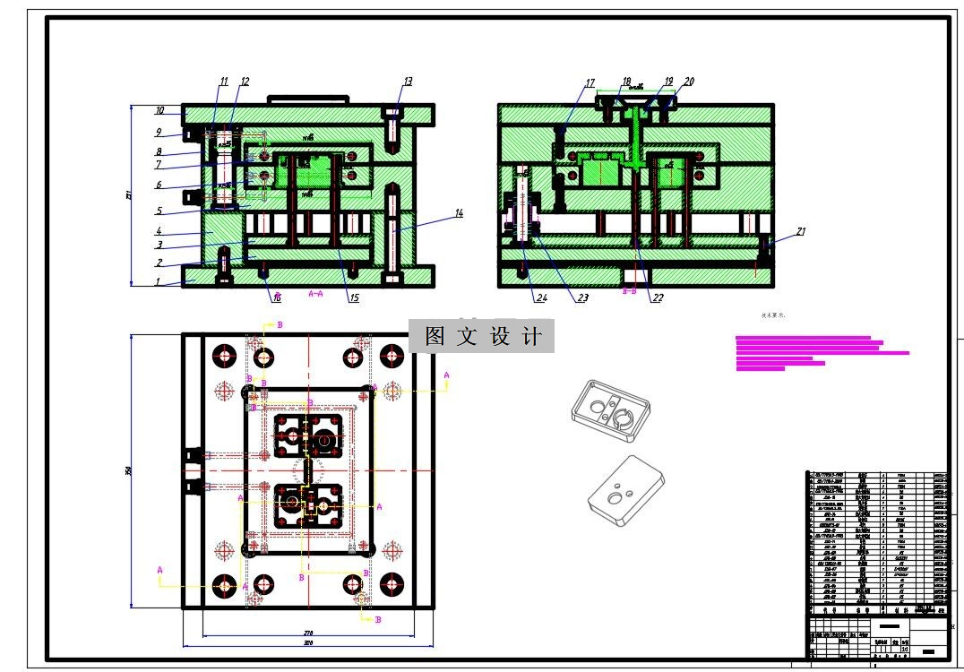 本次设计是端盖的模具设计,端盖是矩形结构,根据设计要求,这里采用的一模2腔,侧浇口,推杆推出的方案,全部设计有,cad工程图,加说明书,模具结构采用是单分型面的模具结构,具体图纸效果如下面截图。1457869
