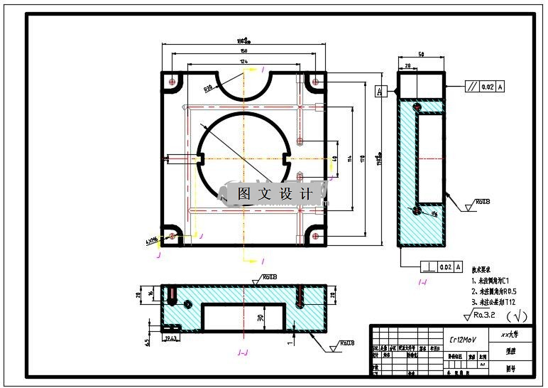 主要是通过对冲压件的工艺分析、冲压工艺方案确定、排样及材料利用率的确定、冲裁力相关计算、模具压力中心的确定、凸凹模刃口尺寸计算、模具主要零部件设计、冲压设备的校核与选定、绘制模具结构示意图等的分析的整个过程以及加工零件,重点在于模具主要零部件参数的计算,模具工作零件的设计。模具结构复杂程度直接决定了冲裁件的精度和质量。在设计帽形件复合模时一定要保证模具结构的合理性。1457609