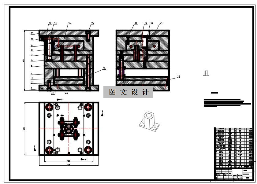 本次是底座的压铸模,根据设计要求,本次是采用的是一模四腔,侧进料,推件板推出的,基本方案,全部的资料有,图纸和说明书,图纸还是比较多的,装配图,型芯,型腔,定模板和动模板,推板以及座板都有的1457599