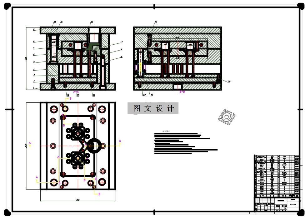 设计内容主要包括:浇注系统设计、成型零件设计、推出机构设计以及模体结构设计。根据铸件的形状特点、零件尺寸及精度,选定了合适的压铸机,本次设计采用的一模2腔,侧边进料,推杆退出的结构方案,单分型面的的结构,一起有图纸和说明书,图纸有装配图,全套的非标零件图1457596