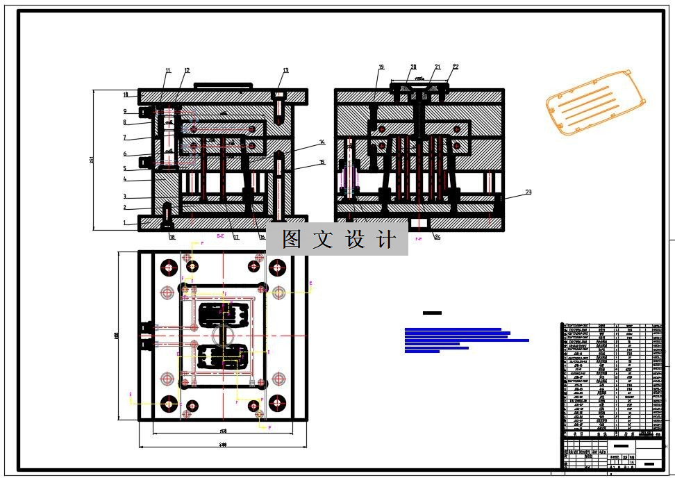 本文研究的是手机后盖的注塑成型。塑件内部有多个卡扣,这里设计的方案,我们是采用斜顶抽芯,设计采用的是一模2腔,侧浇口,浇口的位置才塑件的分型面的底部,采用,推杆和斜顶组合的方案推出,全部设计有三维制件图,加cad装配图,加型芯,型腔,塑件图,说明书。1457575
