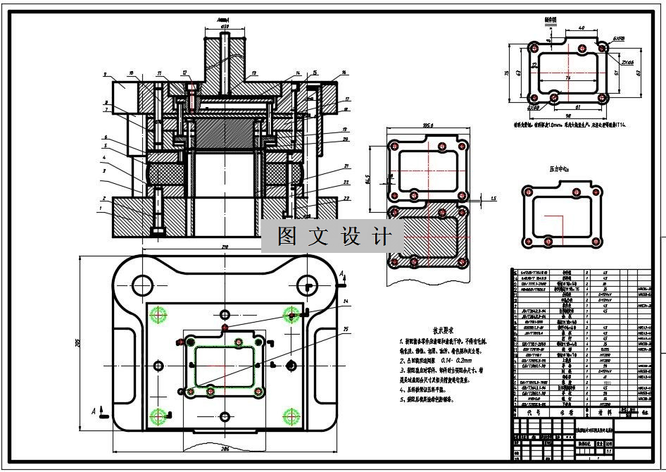 本文对垫片复合冲压模具进行简单的分析,根据毛坯的几何形状要求、材料和尺寸的分析得出冲裁排样设计图、凸模、凹模和凸凹模的结构,采用倒装式复合模冲压,有利于提高生产效率,降低成本、缩短制造周期,模具设计有一定的难度。工艺分析结束后,进行主要零件尺寸的计算,包括凸、凹模以及凸凹模刃口以及毛坯尺寸的计算,然后选取冲压设备,接着是主要零部件的设计和选取,最后进行压力机的校核,采用CAD软件绘制冲压模具工作零件的零件图,绘制垫片倒装复合模的零件图和装配图。 1457552