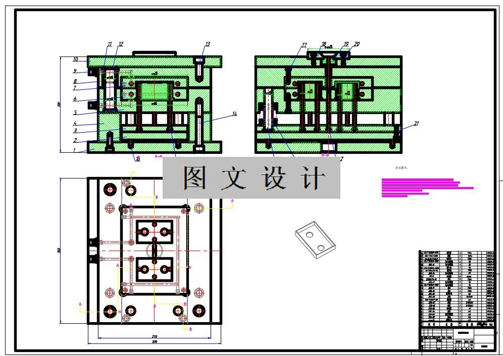 本文研究的是矩形盒盖的注塑成型。首先分析产品的成型工艺,然后根据产品结构,设计如何分型,及型腔数目,进胶方式。过程中要充分考虑到零件的加工方法,尽量简便精准,并进行相关尺寸的计算和校核,再设计浇注系统,冷却系统,排气系统,脱模机构,导向机构,以及模架的选择。通过CAD,UG ,等软件辅助分析设计是否合理,选择合理的工艺参数和设计方案。 1457420