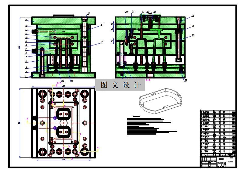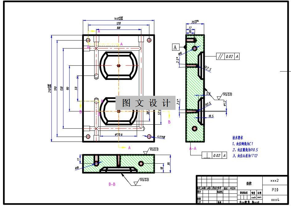 一起有,cad装配图,型芯,型腔,塑件图,说明书,加ug塑件图,本文研究的是盒盖的注塑成型。首先分析产品的成型工艺,然后根据产品结构,设计如何分型,及型腔数目,进胶方式。过程中要充分考虑到零件的加工方法,尽量简便精准,并进行相关尺寸的计算和校核,再设计浇注系统,冷却系统,排气系统,脱模机构,导向机构,以及模架的选择。通过CAD,UG ,等软件辅助分析设计是否合理,选择合理的工艺参数和设计方案。1457402