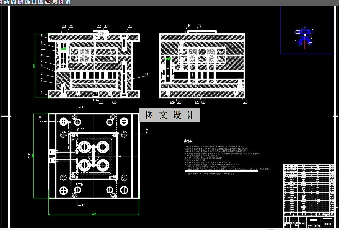 本设计采用CAD、UG软件,进行了塑料模具设计,根据注射模设计,分型面选择在大断面处,进行了浇注系统设计,成型后,塑件成型的产品放在注塑机上。设计需要计算塑件的尺寸,确定尺寸精度,然后注射机的选择。检查注塑机参数包括厚度,模具安装尺寸,模具闭模行程,注塑机锁模力等参数,所有符合要求在确定注射机的类型。在设计过程中,为了更清晰地表达模具的内部结构,所以有很多的模具结构和模具的局部图,并绘制二维图。