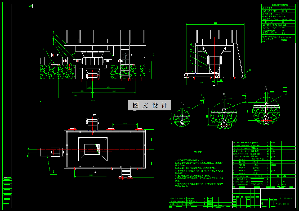 此次设计的破碎对象拟定为最大厚度不大于3mm的薄钢板,采用与传统破碎有一定差别的破碎原理,拟定主要破碎方式为压碎与剪碎。根据要求的生产率的技术要求,结合同类产品的基本数据以及经验公式,通过理论分析计算,确定垃圾破碎机的齿辊转速、齿辊直径、电机功率选型以及减速器选型。设计破碎齿辊的整体结构及校核,通过摩擦磨损实验得到的数据,设计齿形,优化刀具结构参数,包括前角、后角、刀尖角、主偏角、刃倾角等,优化齿形结构;同时,对刀具的材料进行优化选择。包括轴的结构设计及校核,螺栓、轴承、联轴器、键与密封件等的选择分析等。运用PROE软件,建立垃圾破碎的三维立体模型,真实的反映实体的基本结构,提高设计工作效率。