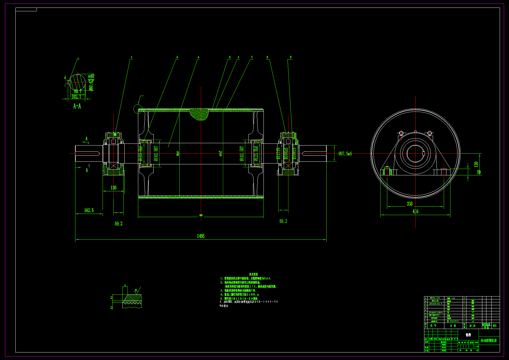 本设计讲述了带式运输机的传动装置——二级圆柱齿轮减速器的设计过程。首先进行了传动方案的评述,选择齿轮减速器作为传动装置,然后进行减速器的设计计算(包括选择电动机、设计齿轮传动、轴的结构设计、选择并验算滚动轴承、选择并验算联轴器、校核平键联接、选择齿轮传动和轴承的润滑方式九部分内容)。运用AutoCAD软件进行齿轮减速器的二维平面设计,完成齿轮减速器的二维平面零件图和装配图的绘制。
