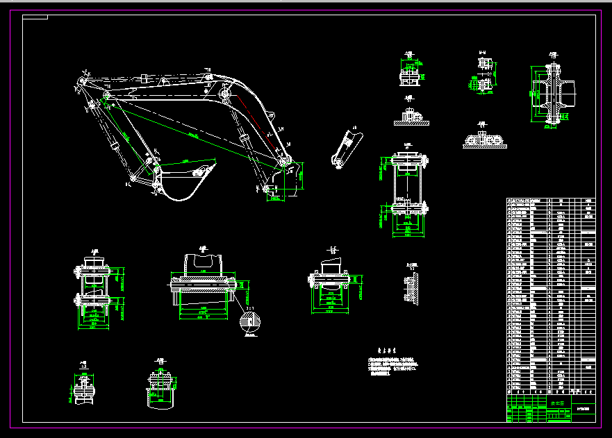 (2) 挖掘机的工作装置详细的机构运动学分析。