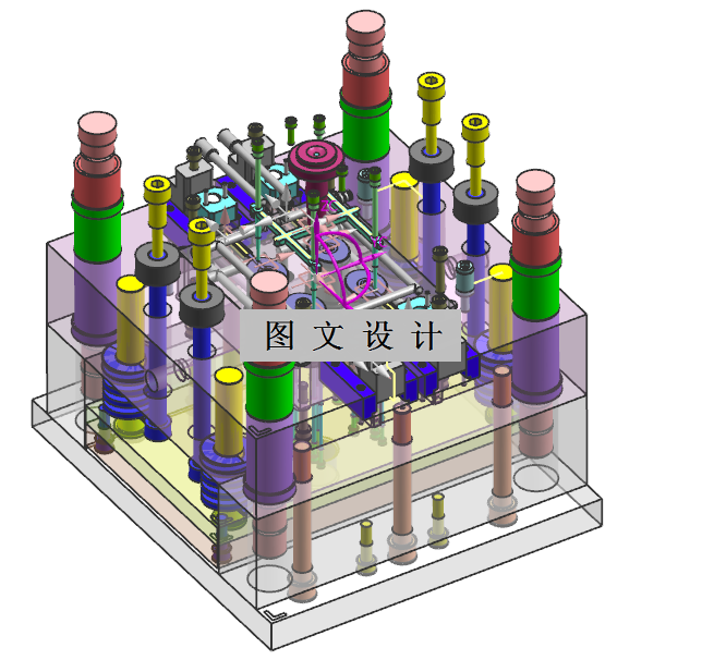 本次设计主要内容为成型洗手液瓶盖设计一套塑料模具方案,在开展方案设计之前首先对洗手液瓶盖结构做出了分析,然后根据其使用要求为洗手液瓶盖选择合适的ABS材质,本次设计型腔数目为一模四腔的结构,本次设计中浇口形式采用了点浇口进胶的方式,通过三维软件获得了产品体积,并对本次模具选定了型号注塑机及龙记标准FCI模架型号。确定了模具最佳分型面位置,然后对主要的模具结构比如浇注系统、脱模机构、模具冷却系统进行详细的设计及计算。在成型零部件设计时,对成型零件的结构形式做出了选择并对成型零件的成型尺寸进行计算。最后对所选注塑机型号进行了校核。