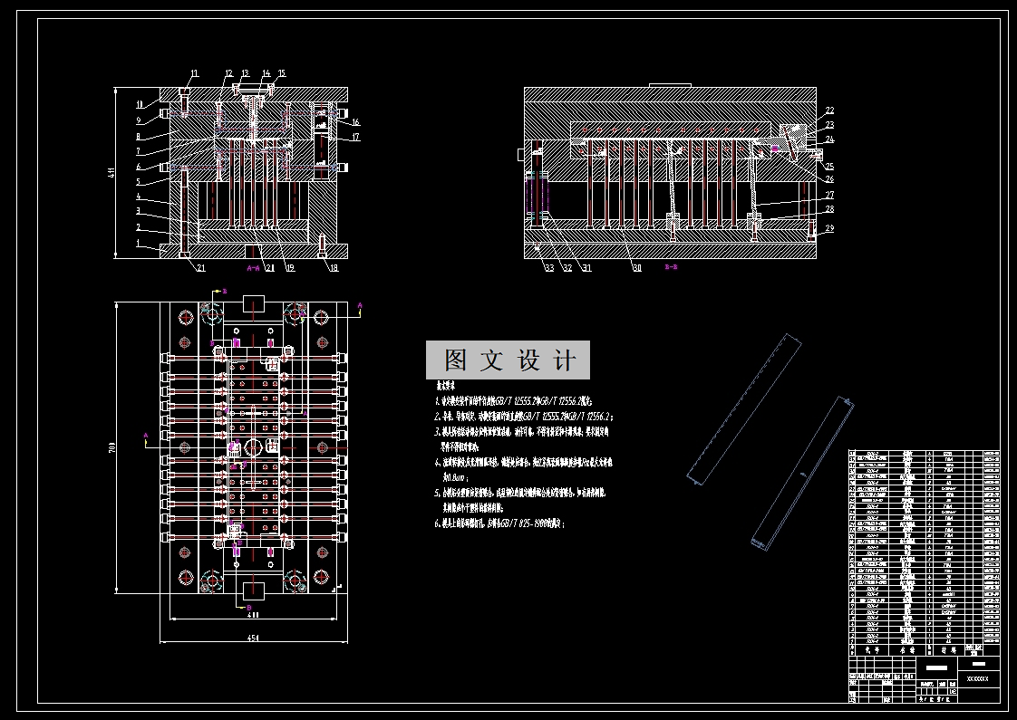伴随着社会发展的工业化进程以及模具制造加工技术的发展,塑料产品被广泛运用于各个领域。本次模具设计课题是研究空调导风条模具成型方案的设计。主要做了以下内容,分析空调导风条结构以及成型工艺性,为空调导风条选择合适材料ABS,确定型腔数目为一模两腔方案,确定了模具最佳分型面位置,采用MoldFlow软件对拟定方案进行模拟分析,选择合适的浇口位置。基于模流分析内容展开模具具体结构设计,包括浇注系统,冷却系统,脱模机构,导向机构,侧向分型抽芯机构等机构设计,在这个设计过程中为本次注塑模具成型选择了合适的型号注塑机,并对所选注塑机型号的重要参数进行校核,本次模具所采用的模架为CI模架。最后根据以上所设计的内容,用所掌握的二维和三维软件绘制出模具零件图、模具装配图和模具三维装配图。最后对成型零件中的型腔进行数控加工,并对加工工序进行后处理生成数控加工程序。