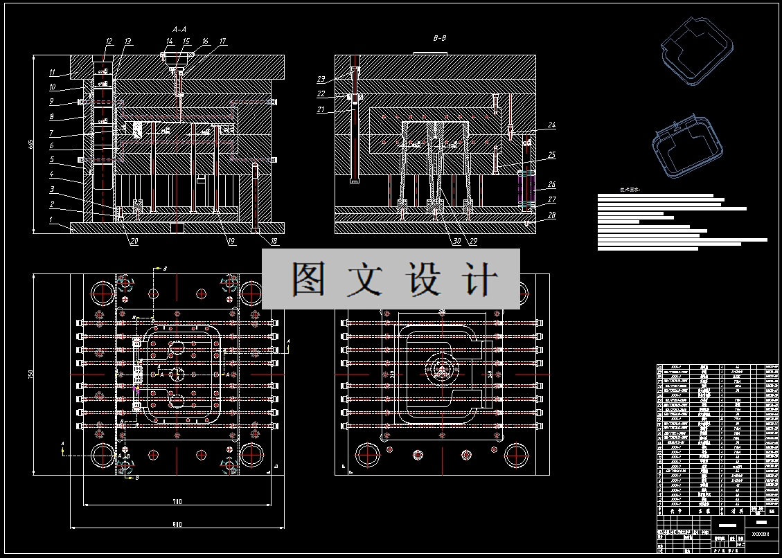 本次设计主要内容为成型垃圾桶盖设计一套塑料模具方案,在开展方案设计之前首先对垃圾桶盖结构做出了分析,然后根据其使用要求为垃圾桶盖选择合适的ABS材质,本次设计型腔数目为一模一腔的结构,本次设计中浇口形式采用了点浇口进胶的方式,通过三维软件获得了产品体积,并对本次模具选定了型号注塑机及龙记标准FCI模架型号。确定了模具最佳分型面位置,然后对主要的模具结构比如浇注系统、脱模机构、模具冷却系统进行详细的设计及计算。在成型零部件设计时,对成型零件的结构形式做出了选择并对成型零件的成型尺寸进行计算。最后对所选注塑机型号进行了校核。