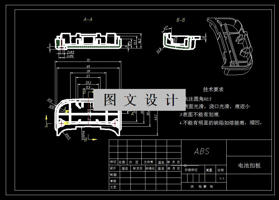 塑料材料在工程实际中的各个领域都有很大的作用,都有许多的应用场合需要,在国民经济中具有很大的价值。在工业制造过程中,一种重要的制造设备就是注射模具。本文主要是对电池扣板注塑成型模具各个结构的设计进行阐述,为成型电池扣板所选材质为ABS,并对电池扣板进行了工艺方面做出了分析,模具的型腔数目为一模两腔结构,采用一字型型腔排布,通过计算电池扣板单次成型所需ABS体积以及锁模力大小,确定了注塑机型号为HTF86J/TJ。模架结构为双分型面细水口FCI模架,然后对模具的浇注系统、脱模机构、冷却系统进行了设计,在对成型零件设计过程中,型芯、型腔采用整体式结构。最后对所注塑机的主要参数进行了校核。顺利地完成了本次模具设计的内容。