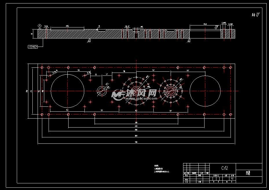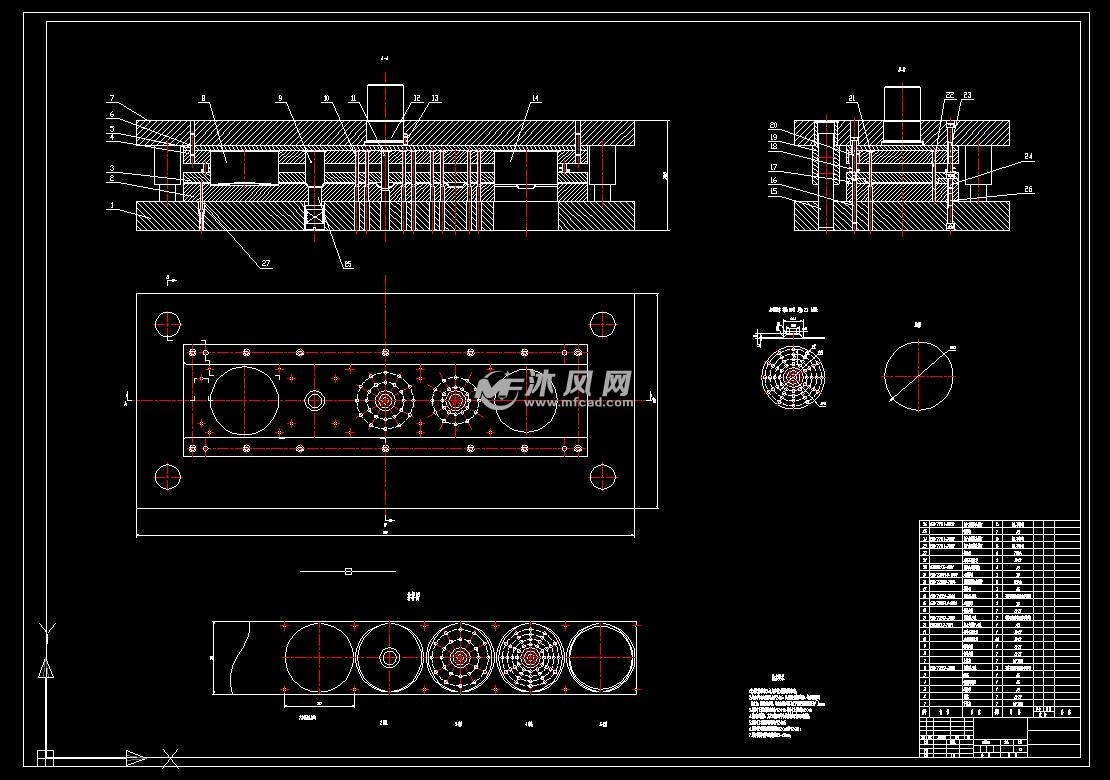对磨刀机配件进行级进模设计,通过对制件的材料,结构,尺寸精度分析。本制件选用材料08钢。磨刀机配件总体上下对称,为一个拉深件,其中有1次拉深,厚度为1.2mm, 磨刀机配件上有49个通孔。磨刀机配件上孔的最小尺寸为7mm。所以磨刀机配件可以采用冲裁模来完成冲裁。冲裁模采用级进模,一个模具完成工件的所有工序,能够实现自动化生产,达到批量生产的要求。本论文从凹模开始设计,选择模架,设计凸模,再算其他模具零件尺寸。 首先是对磨刀机配件的工艺分析,再确定工艺方案。然后对零件图的排样设计,计算材料的利用率以及冲裁板料及条料的利用率。再进行各工艺力的计算和冲裁模工作部分的设计计算,再校核压力机,最后对主要零部件的设计与标准件的选择。为本次磨刀机配件的cad绘制和成形提供依据。通过上面的设计方案画出模具各零件图和装配图。