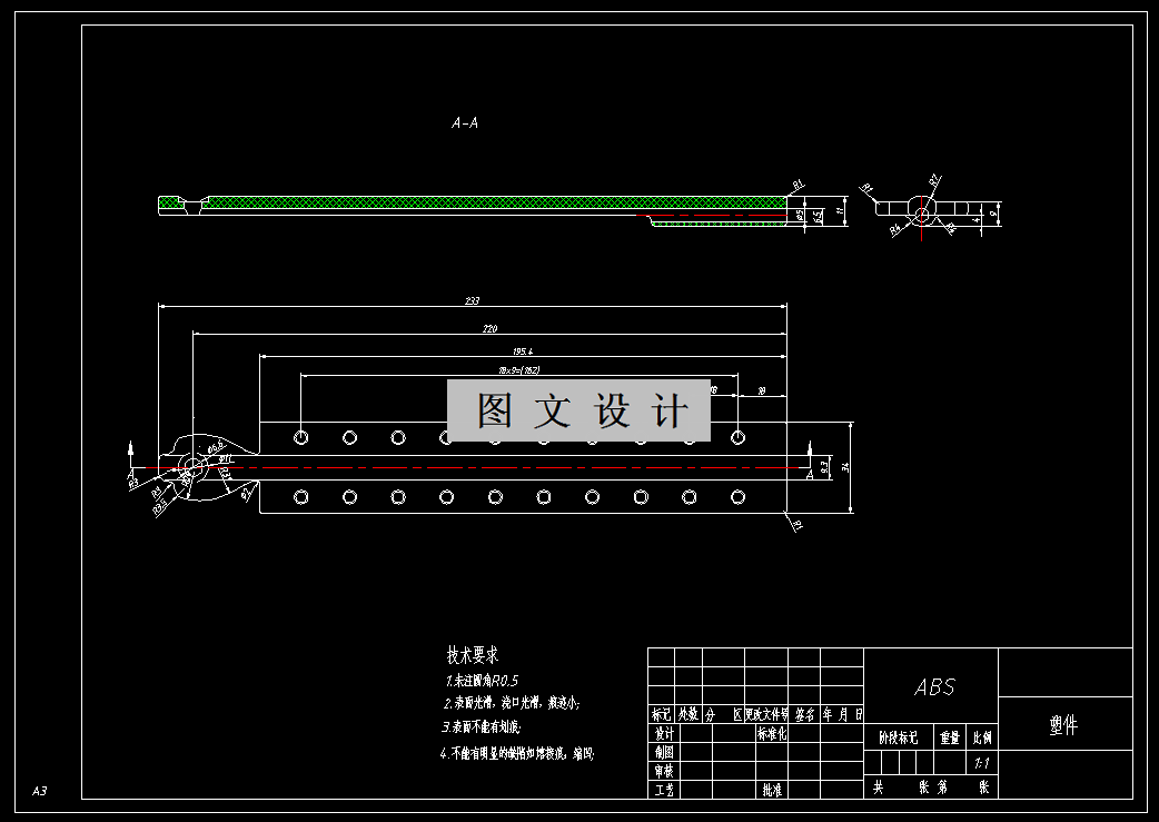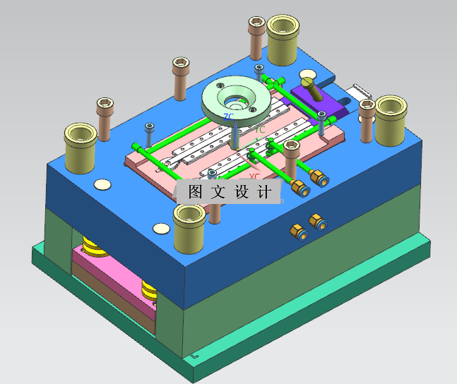 本次设计主要内容为成型玩具枪支架设计一套塑料模具方案,在开展方案设计之前首先对玩具枪支架结构做出了分析,然后根据其使用要求为玩具枪支架选择合适的ABS材质,本次设计型腔数目为一模两腔的结构,本次设计中浇口形式采用了侧浇口进胶的方式,通过三维软件获得了产品体积,并对本次模具选定了型号注塑机及龙记标准CI模架型号。确定了模具最佳分型面位置,然后对主要的模具结构比如浇注系统、脱模机构、模具冷却系统进行详细的设计及计算。在成型零部件设计时,对成型零件的结构形式做出了选择并对成型零件的成型尺寸进行计算。最后对所选注塑机型号进行了校核。