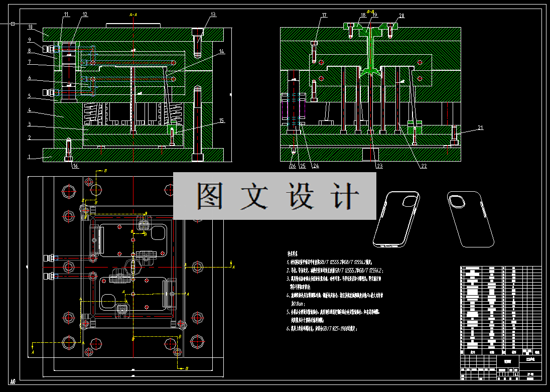 本次设计主要内容为成型iphone13手机壳设计一套塑料模具方案,在开展方案设计之前首先对iphone13手机壳结构做出了分析,然后根据其使用要求为iphone13手机壳选择合适的ABS材质,本次设计型腔数目为一模两腔的结构,本次设计中浇口形式采用了潜伏式浇口进胶的方式,通过三维软件获得了产品体积,并对本次模具选定了型号注塑机及龙记标准CI模架型号。确定了模具最佳分型面位置,然后对主要的模具结构比如浇注系统、脱模机构、模具冷却系统进行详细的设计及计算。在成型零部件设计时,对成型零件的结构形式做出了选择并对成型零件的成型尺寸进行计算。最后对所选注塑机型号进行了校核。