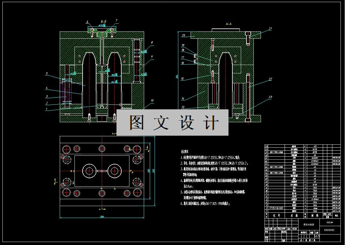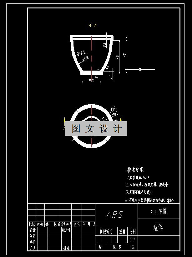 本设计采用CAD技术进行模具装配图及零件图的绘制。对模具进行了成型零部件、浇注系统、侧向抽芯机构、推出脱模机构及冷却系统的设计分析。最后,完成模具总装图设计及主要零件图的绘制,从而确保模具结构的可靠性、合理性和实用性。