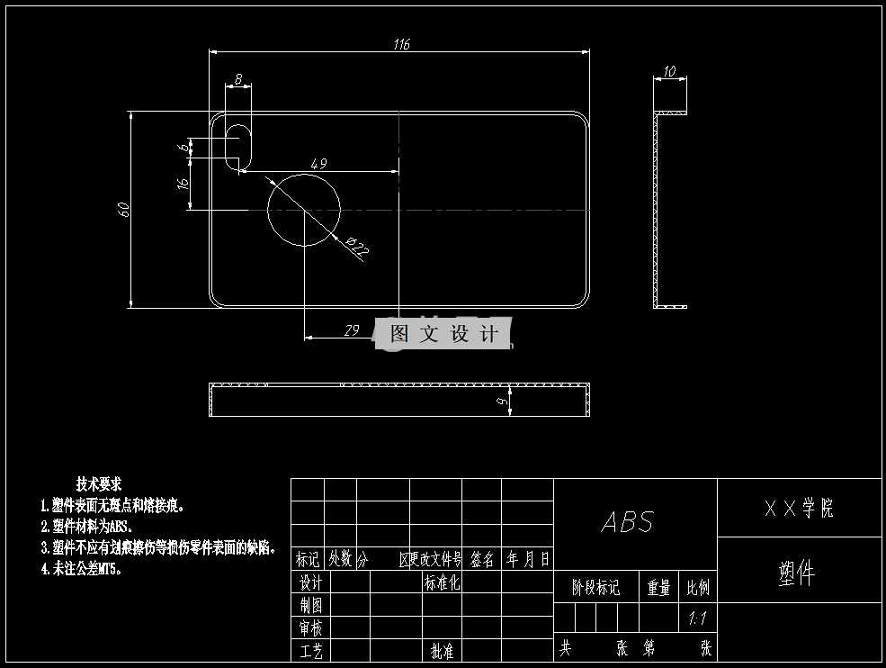 本课题主要是设计注塑模设计,通过对塑件的工艺性以及产品的外形进行分析,对浇注系统、分型面、模具成型部分的结构、推出机构、冷却系统都有了较详细的设计。采用一模2腔侧浇口的注塑模具设计,最终确定出的注塑模可以用来满足成型要求。