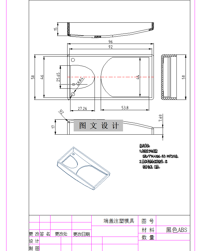 本次毕业设计所选的课题就是为外壳设计一套注塑模具。本次模具设计外壳的外表面结构呈圆弧状。首先对这种外壳的模具进行分析,然后寻找对于这种适合的材料,注塑方式等。然后进行模具的设计制造,模具的设计对外壳的后续生产至关重要。基于对外壳特征、成型工艺等多方面的研究,决定采用一模两腔单分型面的注塑模具设计,然后根据单次注射量和计算出来的型腔压力等参数来选择适合的注塑机,并且对注塑机的各个参数进行校核。进而决定了整个模具的结构,而且还通过对模具设计的浇注系统、脱模机构、推出和复位等机构做出了全面地设计和计算。最终确定出的注塑模可以用来满足外壳的成型要求。1455783