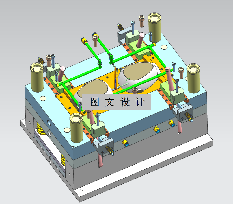本次设计主要内容为成型电动车前盖设计一套塑料模具方案,在开展方案设计之前首先对电动车前盖结构做出了分析,然后根据其使用要求为电动车前盖选择合适的ABS材质,本次设计型腔数目为一模两腔的结构,本次设计中浇口形式采用了侧浇口进胶的方式,通过三维软件获得了产品体积,并对本次模具选定了型号注塑机及龙记标准CI模架型号。确定了模具最佳分型面位置,然后对主要的模具结构比如浇注系统、脱模机构、模具冷却系统进行详细的设计及计算。在成型零部件设计时,对成型零件的结构形式做出了选择并对成型零件的成型尺寸进行计算。最后对所选注塑机型号进行了校核。