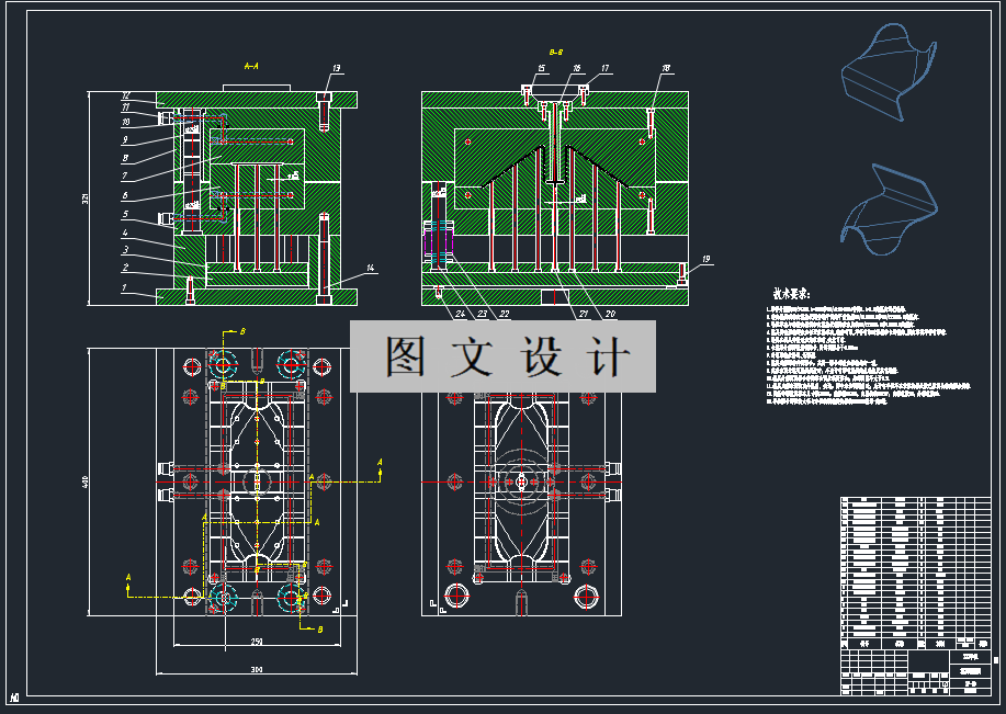 本次设计主要内容为成型肥皂架设计一套塑料模具方案,在开展方案设计之前首先对肥皂架结构做出了分析,然后根据其使用要求为肥皂架选择合适的ABS材质,本次设计型腔数目为一模两腔的结构,本次设计中浇口形式采用了侧浇口进胶的方式,通过三维软件获得了产品体积,并对本次模具选定了型号注塑机及龙记标准CI模架型号。确定了模具最佳分型面位置,然后对主要的模具结构比如浇注系统、脱模机构、模具冷却系统进行详细的设计及计算。在成型零部件设计时,对成型零件的结构形式做出了选择并对成型零件的成型尺寸进行计算。最后对所选注塑机型号进行了校核。