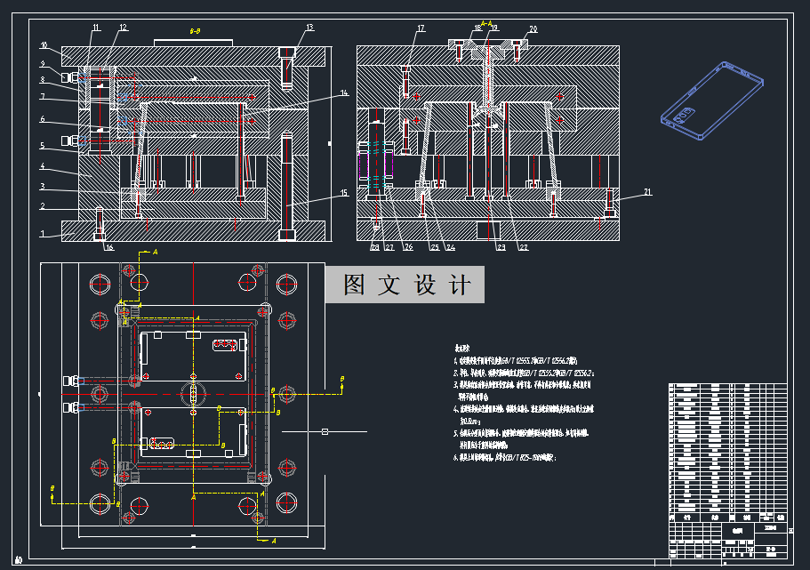 首先根据产品实物华为V30Proe手机后盖的二维尺寸通过UG三维软件绘制3D建模图形,并根据三维图进行产品分析,分析可得华为V30Proe手机后盖属于罩壳一类,分析其结构,塑件内部具有多处倒扣结构,分型面处于模具的最大分型面处,模具型腔数目采用一模两腔,模架选择龙记大水口模架,并使用UG注塑模向导依次设计浇注系统、顶出系统和冷却系统。塑件的浇口设计采用千潜伏式浇口设计方法,顶出系统为顶杆顶出,本次设计多次运用了UG和AutoCAD这两个机械方面的软件,运用了UG绘制了华为V30Proe手机后盖的3D图,并且中间利用三维软件所带的分析功能分析了产品的体积大小,然后用CAD软件完成了产品的二维图绘制,通过这次设计,使我熟练掌握了UG、CAD软件这方面的运用技能。