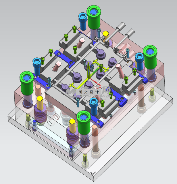 本次设计对成型剃须泡喷头结构的进行简单的分析,然后为生产剃须泡喷头选择PP材质。本次模具设计的型腔数目为一模八腔结构,模架结构为单分型面大水口模架,然后对模具的浇注系统、脱模机构、冷却系统进行了设计,成型零件设计中型芯、型腔采用整体式结构。浇注系统采用侧浇口浇注进胶形式。脱模机构采用推管对产品进行了推出,冷却系统设计了环形模具冷却水道。分型面选在了产品底面最大轮廓处,最后对所选SZA-YY60注射机进行了相关参数的校核。