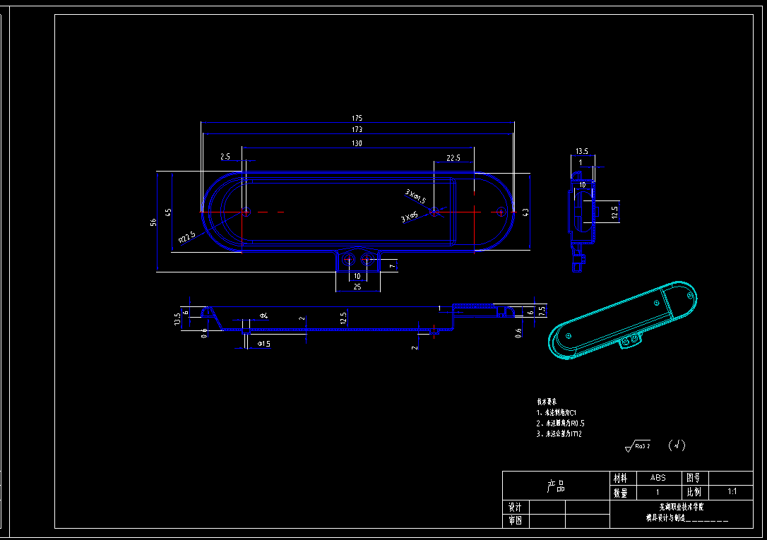 本课题主要是注塑模设计,通过对塑件的工艺性以及产品的外形进行分析,并利用相关软件绘制装配图和注塑模具型芯、型腔及重要零部件零件图。本说明书以图文结合的形式,对浇注系统、分型面、模具成型部分的结构、推出机构、冷却系统都有了较详细的论述。最后对有关参数的校核也有详细的计算。