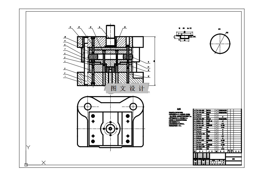 本文是冲孔模具的设计,通过对零件图形的结构和生产工艺性的分析,决定单工序冲孔模。 此冲孔模具的设计,包含1.首先对零件的工艺性进行分析,然后选择了几个可行的方案,接着对工艺方案进行演算和比较,最终确定采用单工序冲孔模,2.制订工艺流程, 3.初步确定冲模结构, 4.冲裁力的计算 5.模具刃口尺寸的计算 6.冲裁模具主要零件的设计及计算