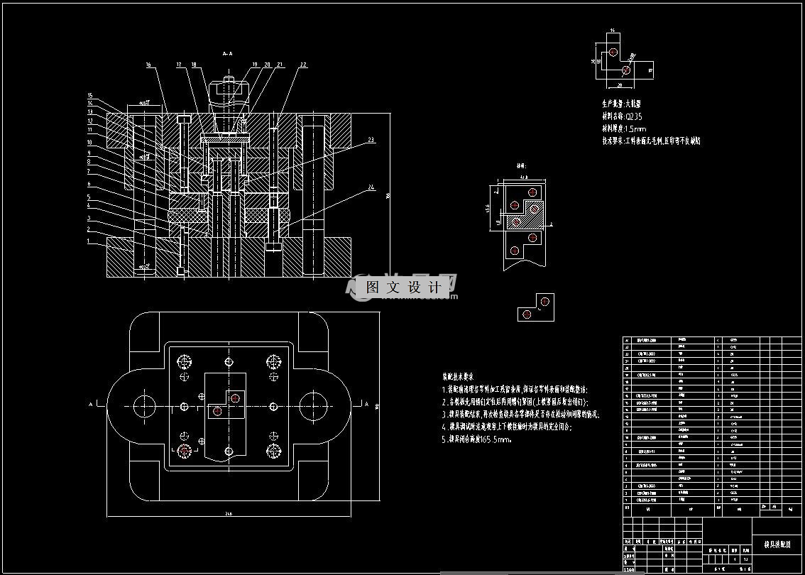 模具的设计的设计先从工件的工艺结构出发,根据工件技术图纸要求和形状来确定模具的设计方案,进步一确定模具制造精度等级,和排样设计从而确定出模具的类型结构。从实际生产的角度出发,为了节约模具制造成本,提高产品生产效率,保证工件的生产精度,该工件的冲裁模具设计采用复合模具冲裁。在模具设计前主要查找工件图纸中未标注公差的尺寸公差,根据尺寸公差来确定模具制造的精度,经过排样分析以后,开始进行模具的结构设计,计算模具的闭合高度、卸料力、冲裁力、冲裁间隙、模具装配配合间隙、凸模高度、压力中心、模具总压力,根据总冲压力选择冲压设备;