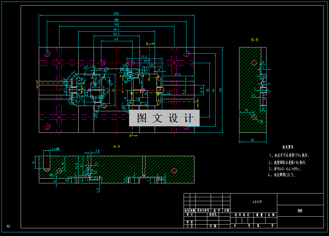 本课题主要是针对TIC接线端子的注塑模具设计,该接线端子材料为丙烯晴-丁二烯-苯乙烯(ABS),是工业生产中常见的一种保护盖产品。通过对塑件进行工艺的分析和比较,最终设计出一副注塑模。该课题从产品结构工艺性,具体模具结构出发,对模具的浇注系统、模具成型部分的结构、侧抽机构、顶出系统、冷却系统、注塑机的选择及有关参数的校核都有详细的设计,同时并简单的编制了模具的加工工艺。通过整个设计过程表明该模具能够达到此塑件所要求的加工工艺。根据题目设计的主要任务是接线端子注塑模具的设计,也就是设计一副注塑模具来生产塑件产品,以实现自动化提高产量。针对塑件的具体结构,该模具采用侧浇口的单分型面注射模具。